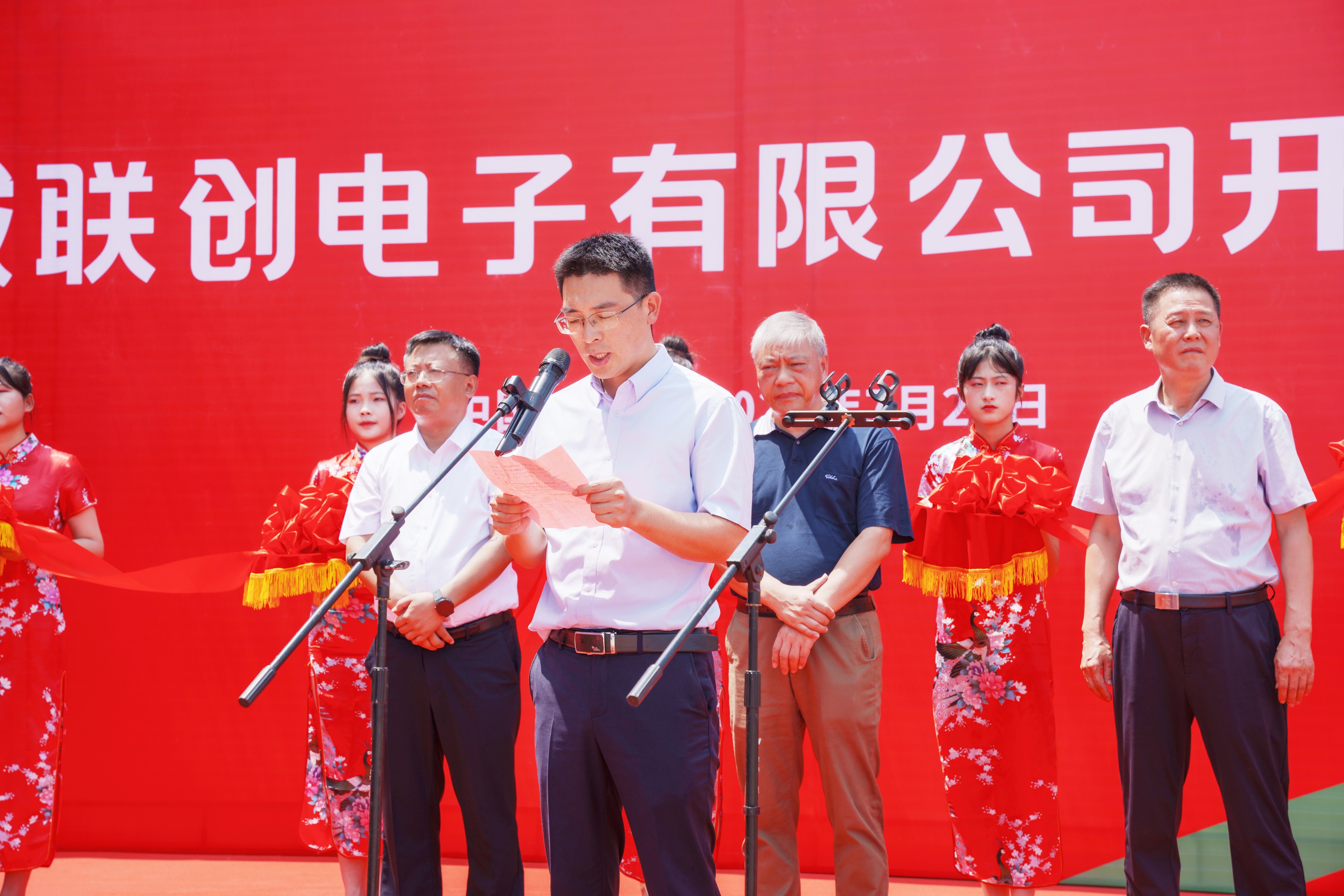 7月25日,桐城联创电子有限公司开工仪式在安徽省安庆市桐城市经济开发区顺利举行。桐城市委书记章周中,市委副书记、市长刘存磊等莅临活动现场,联创电子科技股份有限公司董事长曾吉勇,副总裁胡君剑、汪涛等出席活动。开工仪式由桐城市委常委、经开区党工委书记、管委会主任刘刚主持。